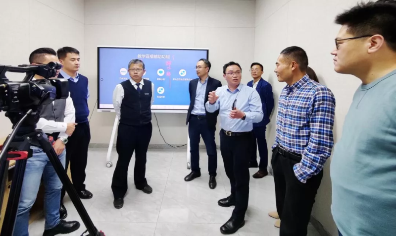 授渔计划基金秘书长高继辉带领与会人员参观了“双师课堂”演播教室、智慧教室模拟场景,现场连线技术人员进行互动授课演示。