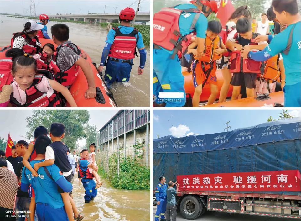 7月21日至25日,中国社会福利基金会救灾救援工作委员会联合蓝豹救援队以及河南属地民间救援力量紧急响应救援工作,已集结10支救援队伍79名救援队员,并携带冲锋舟、发电机、救援艇及救生衣等装备赶赴河南抗洪一线。在这几日的工作中,蓝豹救援队先后赶到荥阳市、新乡市、鹤壁市等区域开展救援和物资运输工作,摸排受灾地区1200余户,转移救援受灾群众4000余名,发放食品类物资八宝粥6310箱、牛奶和酸奶5000件、矿泉水4340件、应急照明灯2000个、手电筒1500个、面包500箱、方便面440箱;发放防汛物资沙袋(含沙)1500个、防汛铁铲1000把、救生衣2540件、雨衣4000件和酒精170箱、救生圈610个、酒精湿巾5791组。