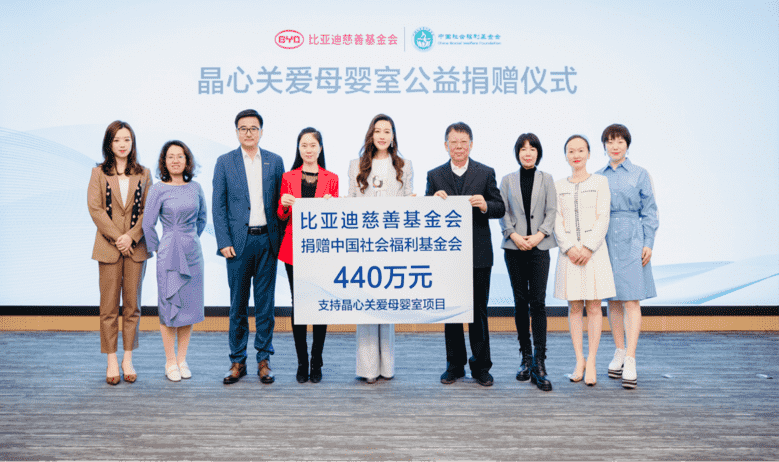比亚迪重视母婴室缺乏给女性带来的困难,并迅速采取实际行动。近日,比亚迪慈善基金会与中国社会福利基金会达成战略合作,捐赠440万元支持晶心关爱母婴室项目,将在2022年落地100台移动母婴室,助妈妈们一“室”之力。