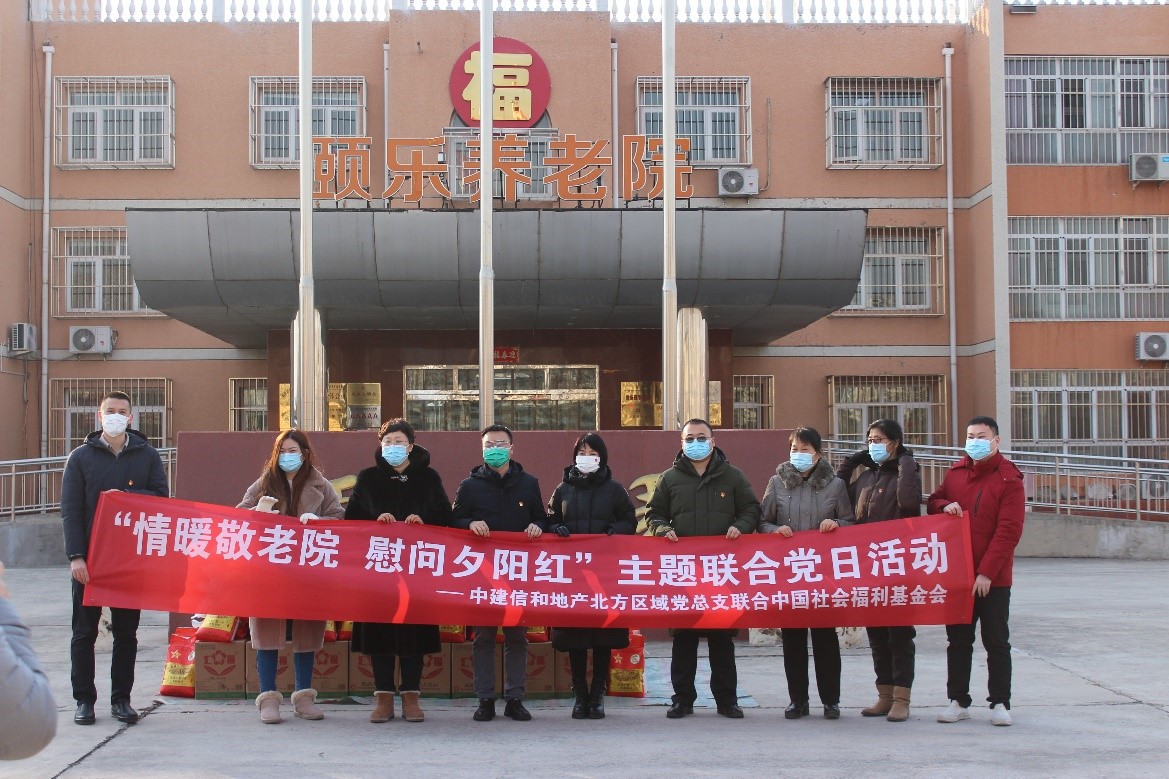上午9:15,拉着满满一车物资的货车率先驶进了养老院的大门,紧随其后一支爱心队伍也到达了。他们是中国社会福利基金会与中建信和地产北方区域党总支的爱心伙伴,此时恰逢中华民族传统的新春佳节到来之际,与老人共同迎接节日的到来,为这个不平常的冬日增添了一抹温暖的亮色。