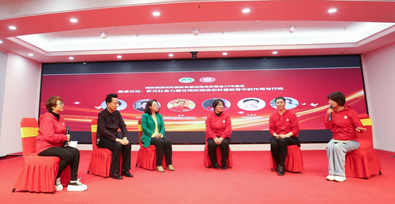 会上还邀请了关工委领导、小学校长、幼儿园园长、社会组织代表等多方代表,围绕“多元社会力量在预防烧烫伤科普教育中的作用与行动”的议题展开了论坛对话。多位嘉宾从自身所在领域,分享了预防烧烫伤教育的重要意义,并对预防烧烫伤科普教育项目的推动给出了有价值的建议。