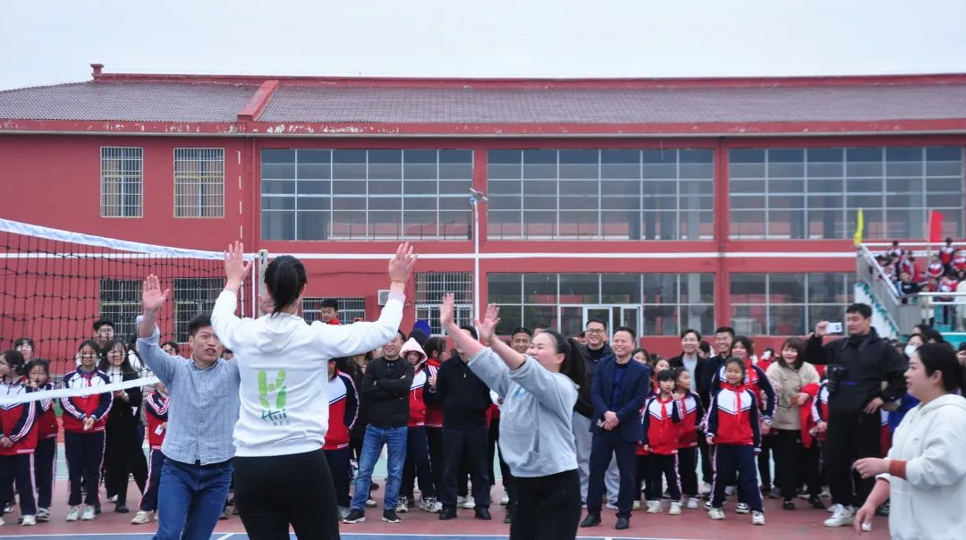 最后惠若琪和袁炜玉与教职工代表进行了一场精彩的排球比赛。
