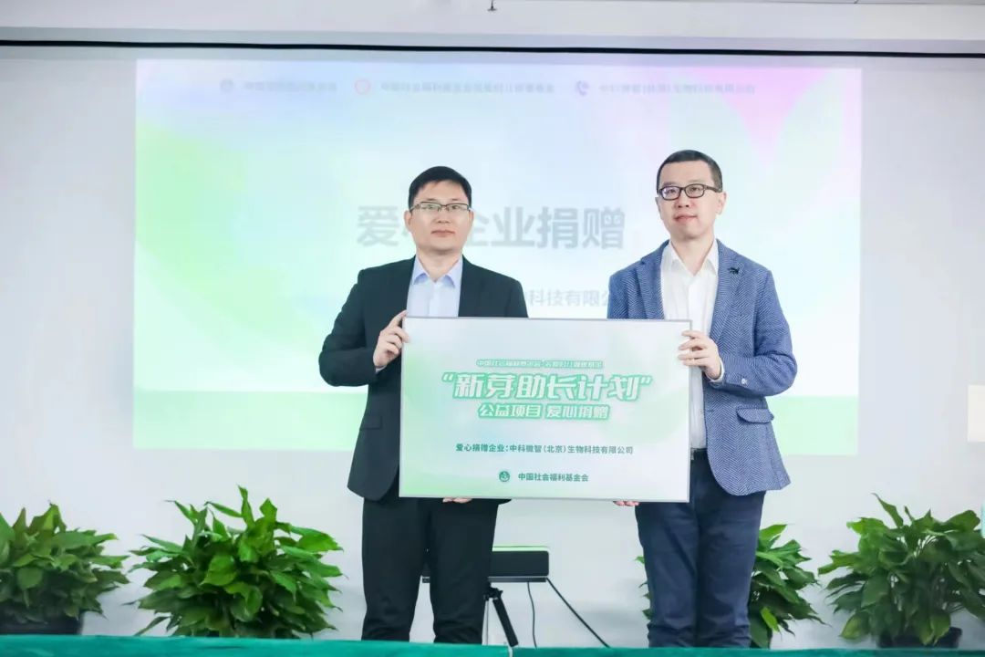 2023年3月23日,中国社会福利基金会关爱妇儿健康基金开展的“新芽助长计划”公益项目启动暨培训交流会在京举行,此项目旨在贯彻落实《“健康中国2030”规划纲要》《国务院关于实施健康中国行动的意见》,进一步提升广大儿童的健康水平,倡导全社会共同关注、关爱生长发育障碍和精神发育障碍儿童。“新芽助长计划”公益项目得到了中科微智(北京)生物科技有限公司的大力支持。