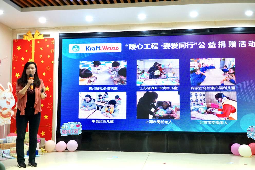 2023年3月,在卡夫亨氏中国的大力支持下,“暖心工程·婴爱同行”公益项目,通过河北、湖北、广东、浙江、江西、贵州、山东、云南等8个省14个市县的优秀的福利机构和社会组织,将10023箱满载社会关爱的亨氏营养食品发放给4000余位困境儿童、残疾儿童、福利儿童、老年人和残疾人。