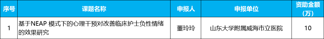 合作课题(1项-基金会和威海市立医院各资助5万)