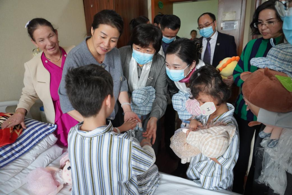 缪瑞兰副理事长一行来到住院部,看望新疆、西藏地区患者,与患者家属亲切交流,详细了解患者病情及治疗方式,鼓励孩子们战胜困难,叮嘱他们安心接受治疗,积极配合医院做好术后康复锻炼。