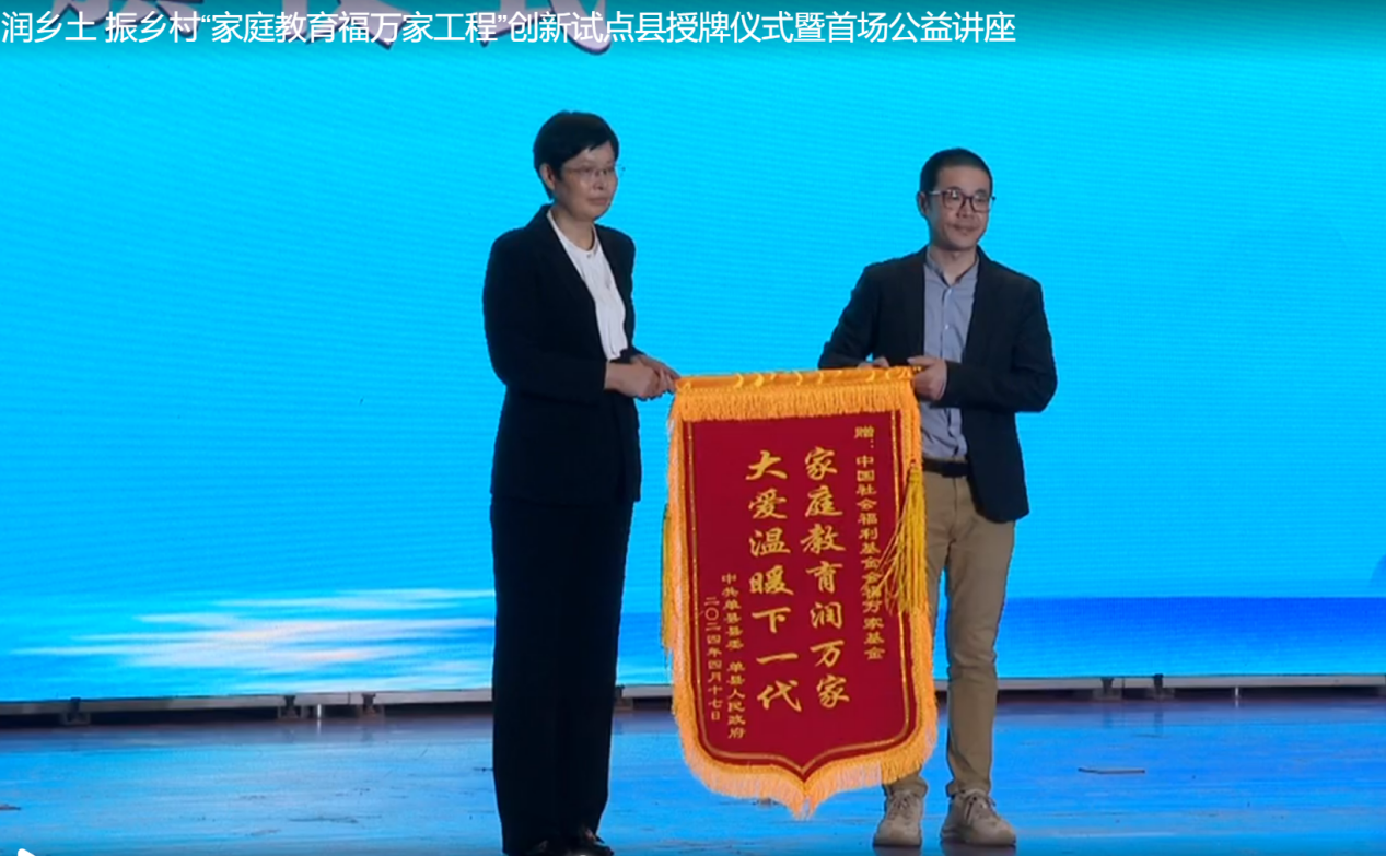 4月17日,润乡土 振乡村“家庭教育福万家工程”创新试点县授牌仪式暨首场公益讲座在单县举行。此次活动是贯彻落实党和国家重视家庭教育建设的具体举措,旨在发挥各方优势,探索建立政府主导、家校社协同推进立德树人家庭教育的有效工作机制。中国家庭教育学会常务副会长兼秘书长杨淑文、中国社会福利基金会副理事长兼秘书长缪瑞兰出席会议并讲话,中国社会福利基金会福万家基金执行主任付秋霞介绍了项目情况,山东省菏泽市妇联党组成员、副主席李荷玲,单县县委副书记、县长魏传永出席会议并致辞。单县县委副书记陈纪强主持会议。