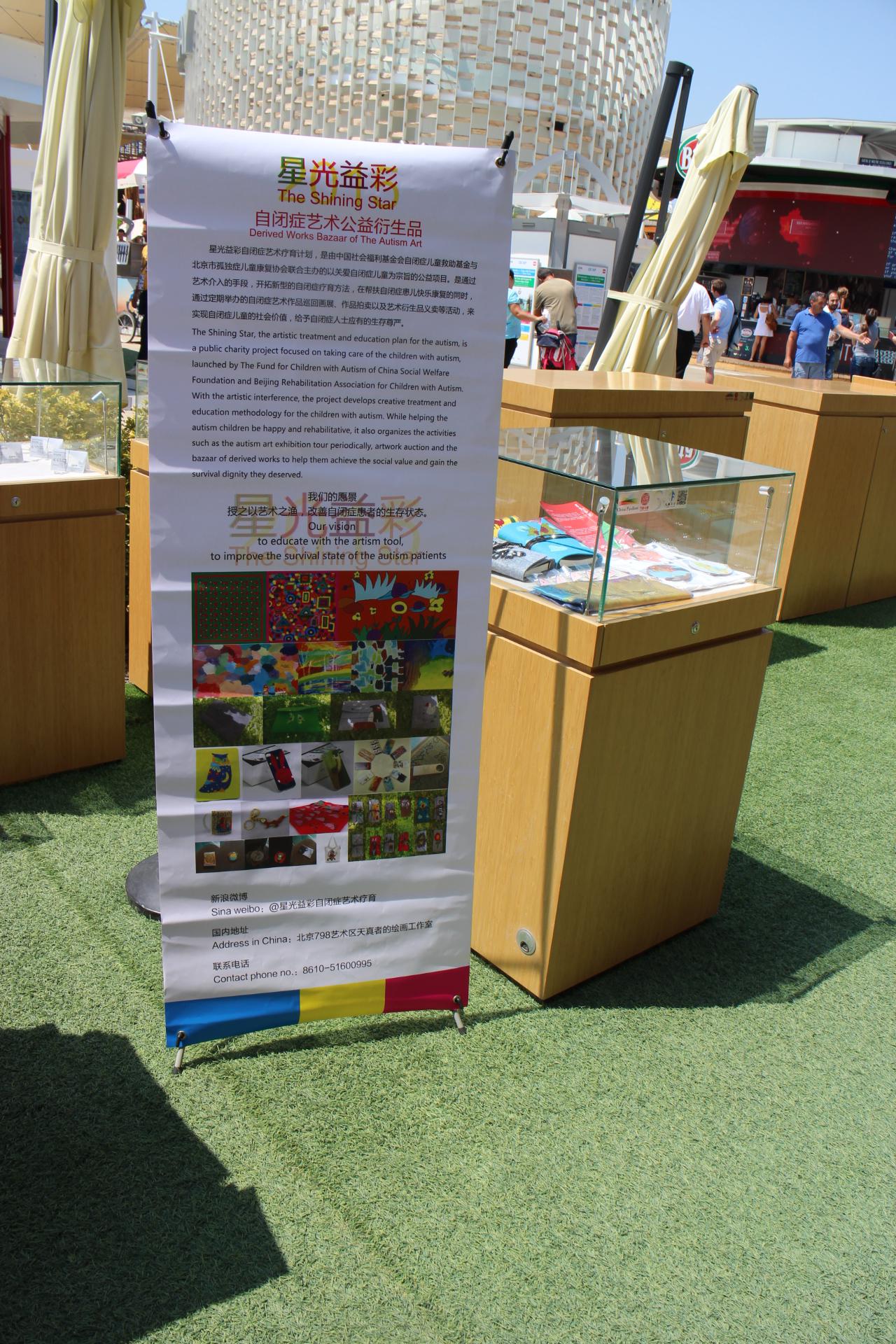 在米兰世博会中国馆的入口处用独特的方式展览了这些自闭症(孤独症)人士的这些画作,这些自闭症孩子们的画作将在世博会中国馆从2015年7月19日-7月29日,展示为期十天,之后,这些中国自闭症(孤独症)人士的画作将作为国礼赠送给外国来宾。将他们的才华展示在全世界的眼前的同时,引起更多人对自闭症(孤独症)群体的理解和关注:他们与普通人一样拥有才华和骄傲,只是他们更需要理解和尊重,希望人们用自身的行动去善待身边的特殊群体,多一份爱护,就多一份改变。