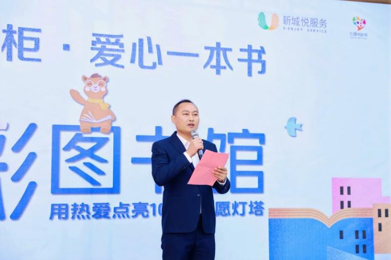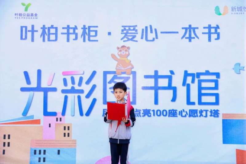 新城悦服务集团有限公司的代表发表讲话。每一座光彩图书馆的落成,都汇聚了校方、基金会以及志愿者们的辛勤付出和汗水,同时也承载了我们对孩子们的无尽期望。