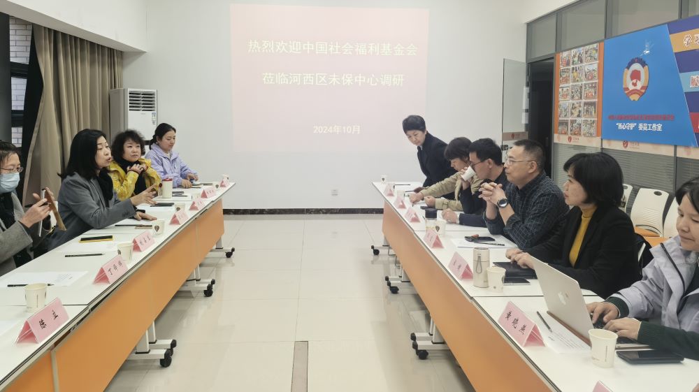随后,调研组在天津市河西区未成年人救助保护中心进行了座谈,了解了河西区未成年人保护体系的整体运行情况,包括社工机构和社区儿童主任的工作情况。