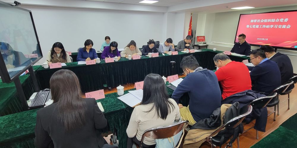2025年2月12日,部管社会组织综合党委第七党建工作站召开全体成员单位会议,传达学习习近平总书记在中共中央政治局民主生活会上的重要讲话精神以及部管社会组织综合党委《关于召开2024年度基层党组织生活会和开展民主评议党员的通知》,推动基层党组织生活会和民主评议党员工作的开展。第七党建工作站站长单位、中国社会福利基金会党支部书记詹成付同志主持会议。