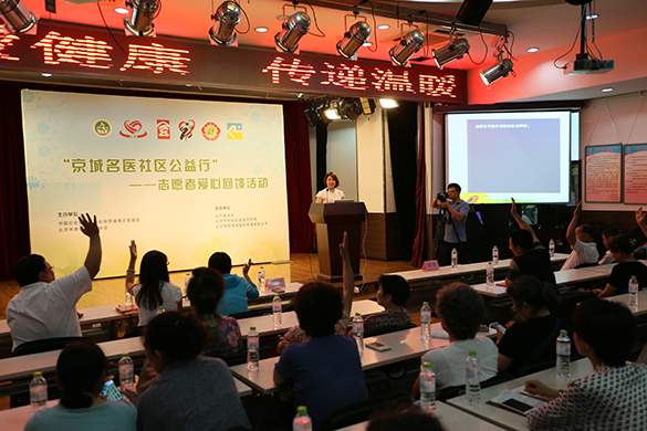 8月8日上午,由中国社会福利基金会聚家健康关爱基金联合北京市老年志愿者协会共同主办的“京城名医社区公益行—志愿者爱心回馈”活动在北京金融街道文化活动中心举行。本次活动以“关爱健康、传递温暖”为主题,邀请了中国医学科学院肿瘤医院、北京医学会的专家马杰教授为社区百余位优秀志愿者讲授肿瘤预防知识,树立了定期检查、及早治疗、肿瘤可防可治的健康理念。