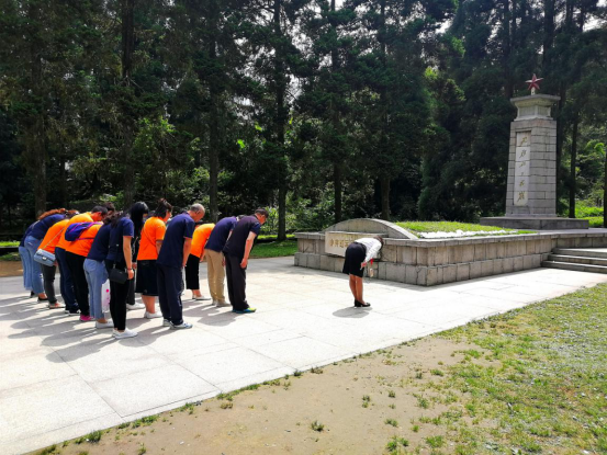 南井冈干部学院教师在革命烈士陵园对基金会全体进行现场教学,基金会全体向革命烈士敬献了花圈。全体党员群众高举右手、握紧拳头,面对为理想献身的烈士忠魂,庄严宣誓!