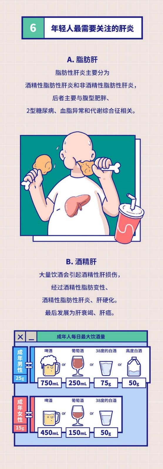 28岁的小李 由于工作需要,经常应酬喝酒到深夜。今年6月,他开始出现发烧、没有食欲等症状。起初他以为自己感冒了,随便吃了两颗感冒药,结果体温没有降下来,小便、皮肤、眼睛逐渐开始变黄。赶紧去医院检查才发现,小李已经出现肝衰竭,再晚一步,后果将不堪设想…
