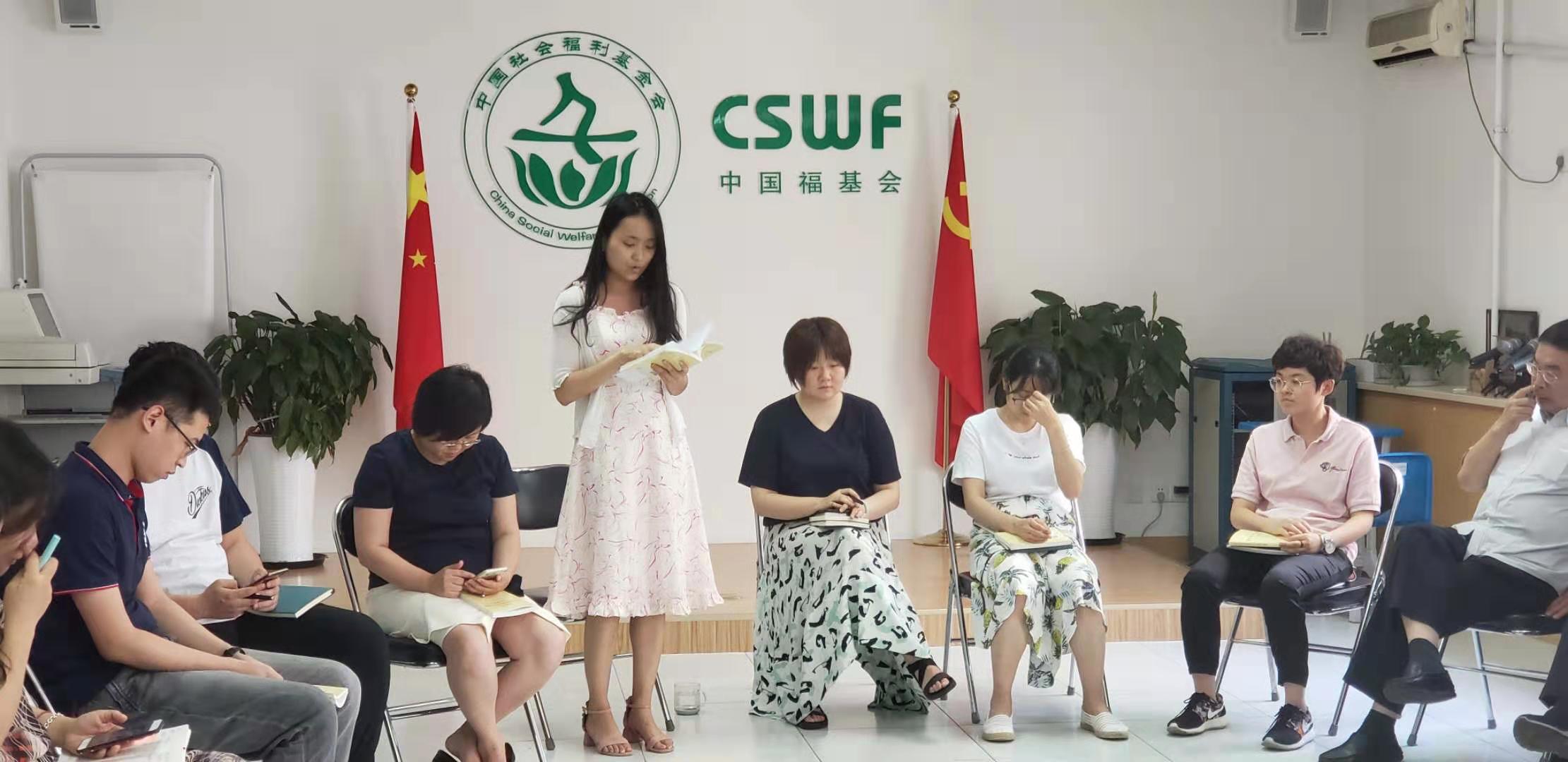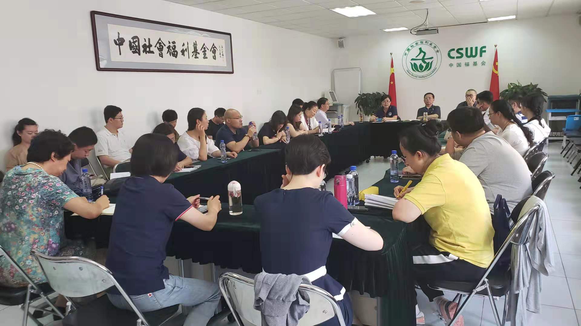 为使福基会系统内各部门、专项基金、合作伙伴,能够共同以习近平新时代中国特色社会主义思想武装头脑,指导实践,推动工作,使大家以坚定的理想信念坚守初心,恪守全心全意为人民服务的宗旨,2019年7月24日,福基会组织了各专项基金负责人参加的理论学习和研讨会,围绕主题教育活动,研讨问题和差距。