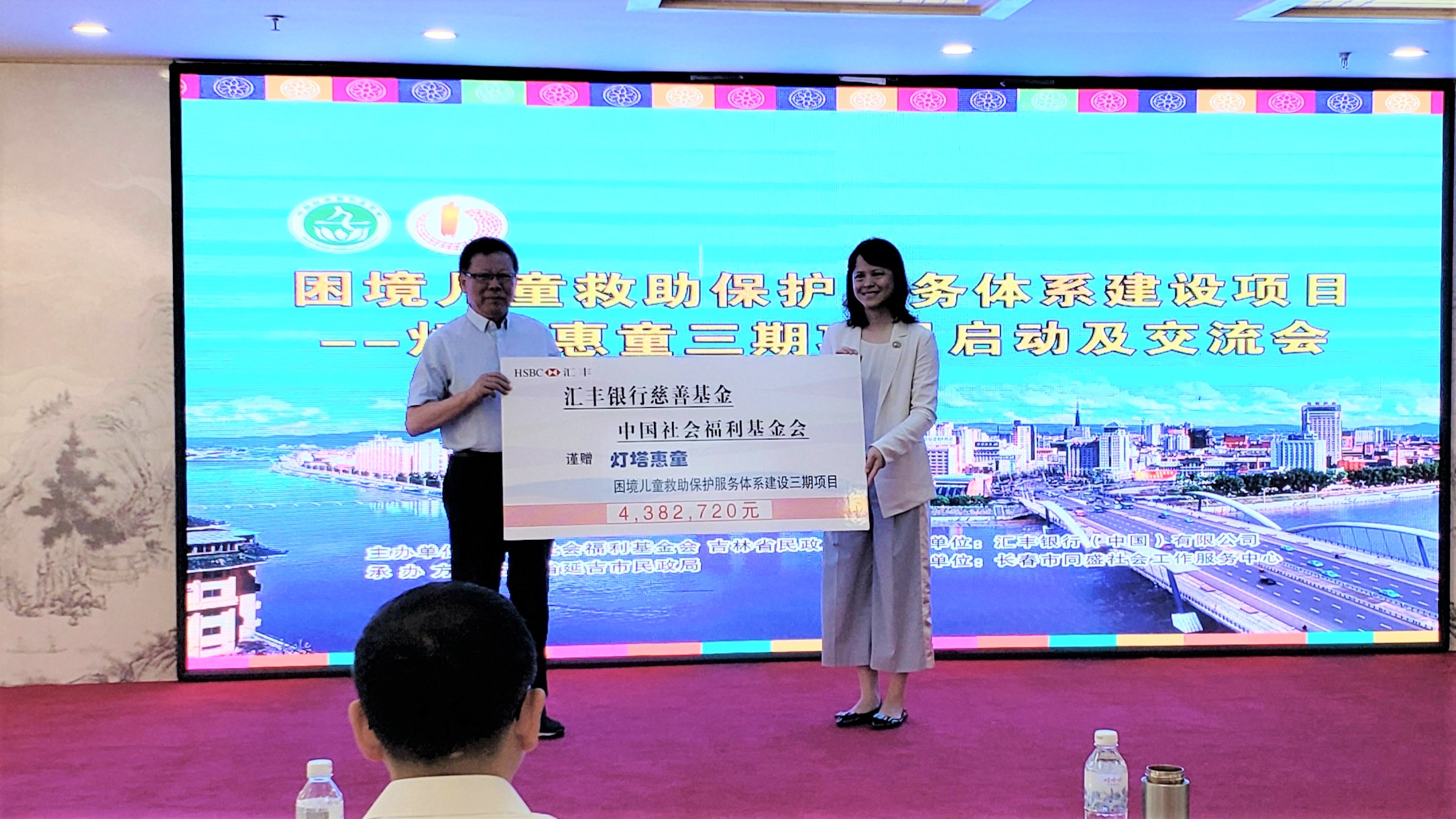 在此次启动仪式上,汇丰银行(中国)有限公司向中国社会福利基金会捐赠人民币4382720元支票,用于灯塔惠童三期项目的开展。来自各地区的项目负责人针对困境儿童救助保护服务体系建设和帮扶工作的经验及成果进行了分享讨论。