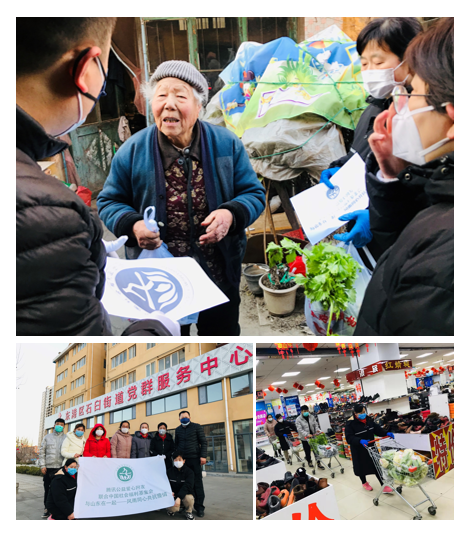 (6)陕西省伙伴机构-陕西仁爱儿童援助中心组织志愿者为唐园小区、东仪小区安保人员发放口罩、洗手液物品10套,协助排查返城人员。联合合阳县新时代文明实践中心、合阳县爱心飞扬公益服务中心,组织5名志愿者走进社区发放防疫宣传资料200份,并劝导行人佩戴口罩。