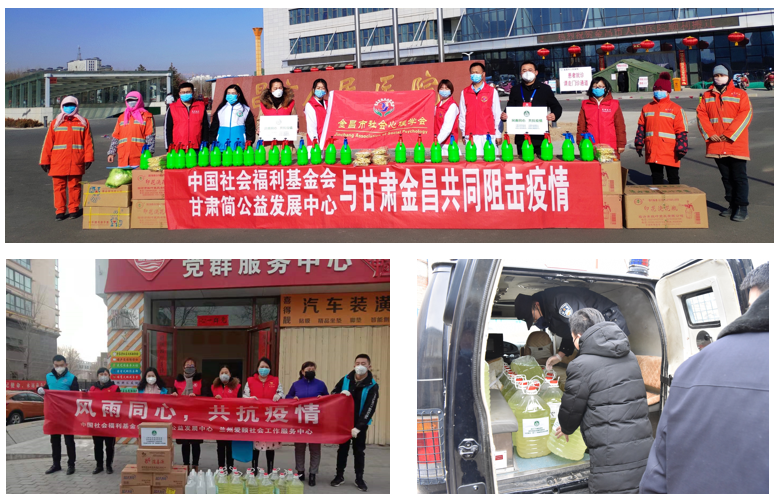 (11)甘肃省伙伴机构-甘肃简公益发展中心联合各地市伙伴资源,在兰州、甘南州、金昌市、民乐县等地,面向医疗机构、街道社区、高速公路巡防点站、环卫部门、特殊教育机构等一线单位,进行了防疫物资捐助工作。共发放隔离防护物资400件套、日用消毒液300余瓶、84消毒液1600公斤。