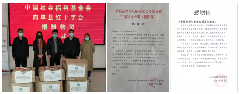 2020年3月9日,福万家基金联合爱心企业深圳市倍轻松科技股份有限公司向山东省单县新型冠状病毒感染的肺炎防控工作指部捐赠韩国KF94口罩5500只,其中有1000只发放至单县郭村镇政府防控站。