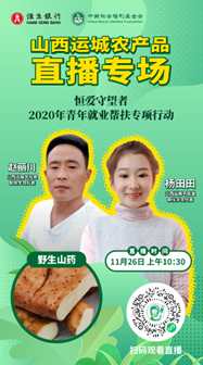 今年8月,恒生银行(中国)有限公司携手中国社会福利基金会开展“恒爱守望者——青年就业帮扶专项行动”,投入100万元人民币为山西省运城市平陆县和万荣县因疫情就业受阻的民政低保家庭青年提供就业扶持金,通过专业机构开展职业发展与规划、金融知识、农产品直播营销等培训,提供就业创业跟踪辅导,提升当地青年的就业能力,促进多渠道就业和创业。