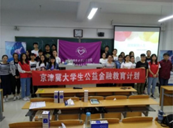 2017年—2018年,“校园贷”不断引发新闻悲剧事件,在中国银保监会指导下,中心开展“京津冀大学生公益金融教育计划”项目。中心组织授课专家、金融志愿者在北京、天津、河北地区深入首都经贸大学、对外经贸大学、中国地质大学、北京科技大学、天津工业大学、天津商业大学、河北师范大学、河北科技大学、河北交通职业技术学院等30所高校开展金融知识主题宣讲和金融话剧演出活动。