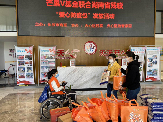 为落实总书记《在统筹推进新冠肺炎疫情防控和经济社会发展工作部署会议上的讲话》要求,“精准复工复产”和对“重病重残人员等群体,要加强走访探视和必要帮助,防止发生冲击社会道德底线的事件”,芒果V基金与湖南省残联合作,走访探视资助在家的智力、自闭、脑瘫等重度残疾人士,发放5000套防疫助残爱心包,其中,湖南3500名、黄冈市1500名,爱心包包含免洗水凝胶、84消毒液、挂面、大米、口罩。