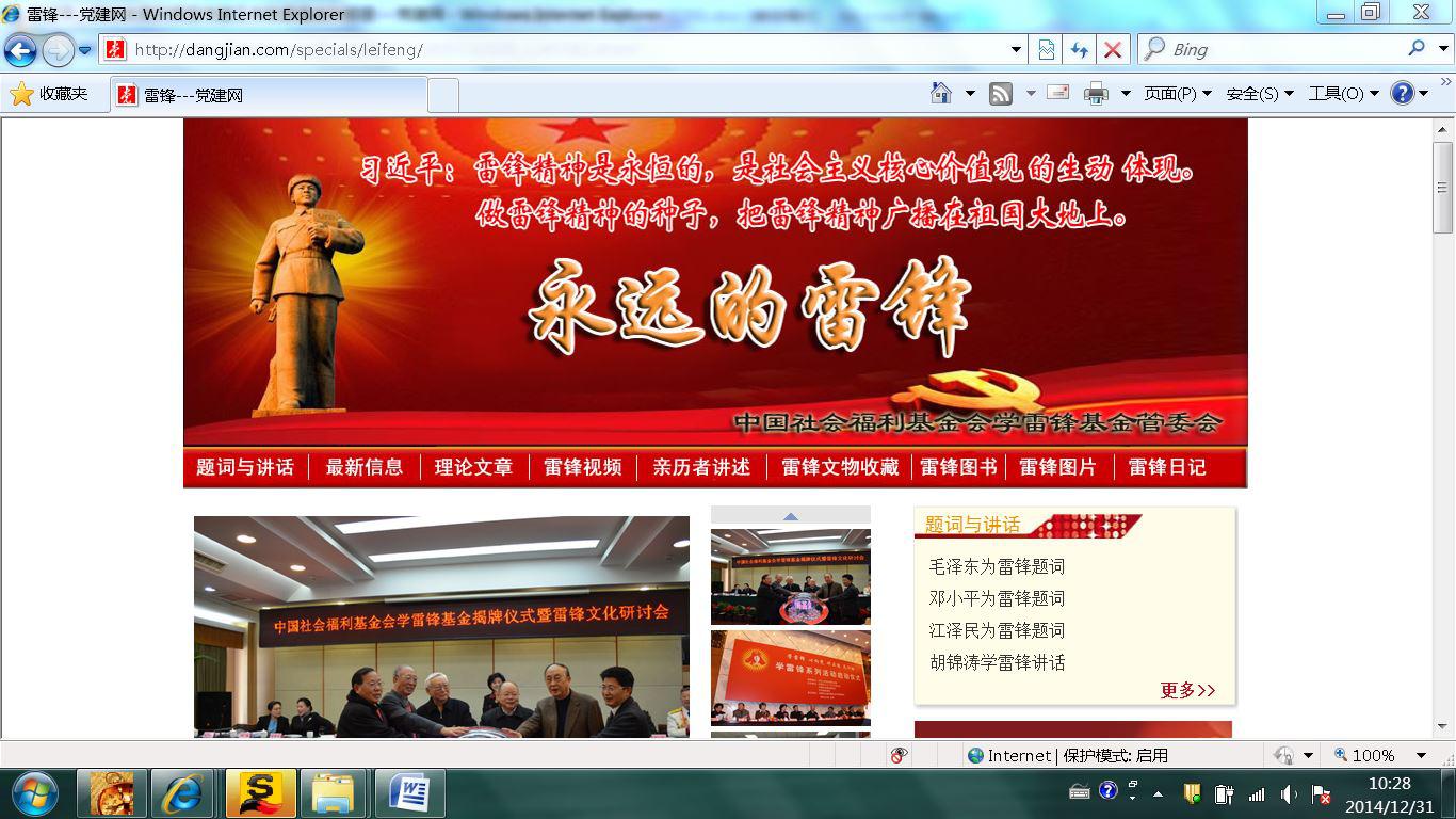 12月18日,雷锋诞辰74周年之际,中宣部主办的党建网为中国社会福利基金会学雷锋基金(以下简称学雷锋基金)制作的宣传专页“永远的雷锋”正式开通上线。习近平总书记指出,“雷锋精神是永恒的,是社会主义核心价值观的生动体现。做雷锋精神的种子,把雷锋精神广播在祖国大地上。”党建杂志领导表示,无偿为学雷锋基金设计制作雷锋宣传网页,是中宣部、党建杂志义不容辞的责任。他们希望通过帮助雷锋战友办网发声,永远高扬雷锋旗帜,把雷锋精神广播在祖国大地上。