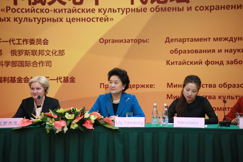 中国国务院副总理、中俄人文合作委员会中方主席刘延东与俄罗斯联邦副总理戈罗杰茨共同出席了“中俄关心下一代论坛”