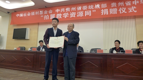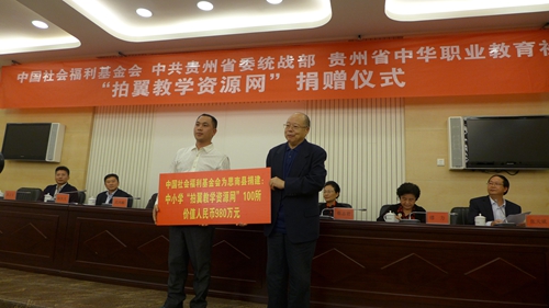 10月27日,由中国社会福利基金会、省委统战部、贵州省中华职业教育社组织的“拍翼教学资源网”捐赠仪式在贵阳举行。中国社会福利基金会理事长刘光和、副理事长兼秘书长缪力,贵州省委常委、统战部部长刘晓凯,贵州省政协副主席蔡志君,贵州省中华职业教育社主任武鸿麟出席捐赠仪式。