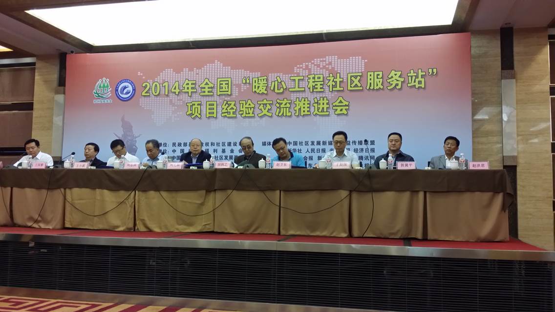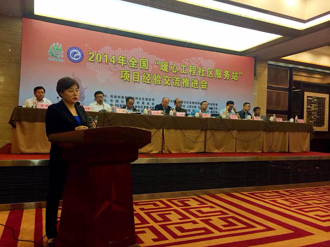 由民政部基层政权和社区建设司指导、中国社会福利基金会主办的2014年全国“暖心工程社区服务站”项目经验交流推进会,于9月10日至11日在哈尔滨市召开。中国社会福利基金会理事长刘光和;中国社会福利基金会顾问、原国家出入境检验检疫局局长兼海关总署副署长田润之;民政部民间组织管理局副局长刘忠祥;民政部基层政权和社区建设司司长助理赵卫东;还有黑龙江省民政厅、哈尔滨市政府、道里区委区政府等相关领导,出席了本次大会。来自12个省市的地方政府、地方民政领导,“暖心工程社区服务站”执行单位,社会责任专家、爱心企业家、相关社会组织、新闻媒体代表,共200余人参加了本次大会,共同交流暖心工程建设经验,进一步推进“暖心工程社区服务站”项目工作。中国社会福利基金会副秘书长、救急难项目部主任兼社区发展基金执行理事长缪瑞兰全程主持了大会。