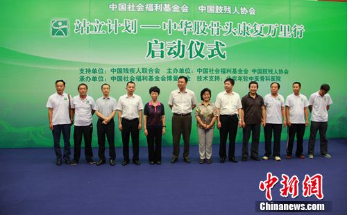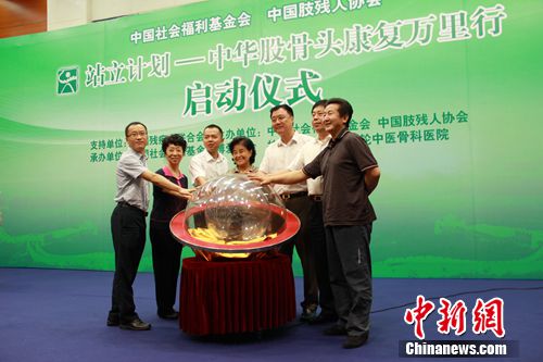 中新网北京8月27日电(杜雯雯) 26日,由中国社会福利基金会、中国残肢人协会主办的“站立计划—中华股骨头康复万里行”活动启动仪式在北京举行。据悉,2014年的救助名额将以省级为单位,提供10名全额救助,每人救助的上限为6万元;20名部分救助名额,每人救助5000元。