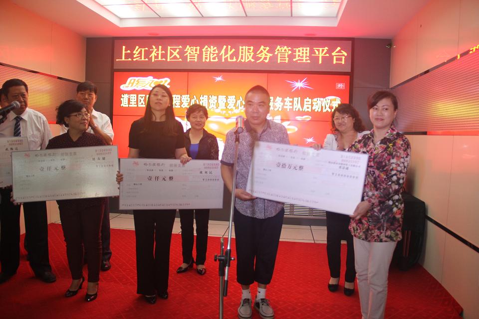 2014年9月4日,哈尔滨市道里区通江街道举行暖心工程捐赠启动仪式。50名贫困老人喜获为老服务卡,乐享免费为老人提供理发、洗浴、用餐、观光游等暖心工程助老服务。至此,道里区暖心工程正式在116个社区全面铺开。