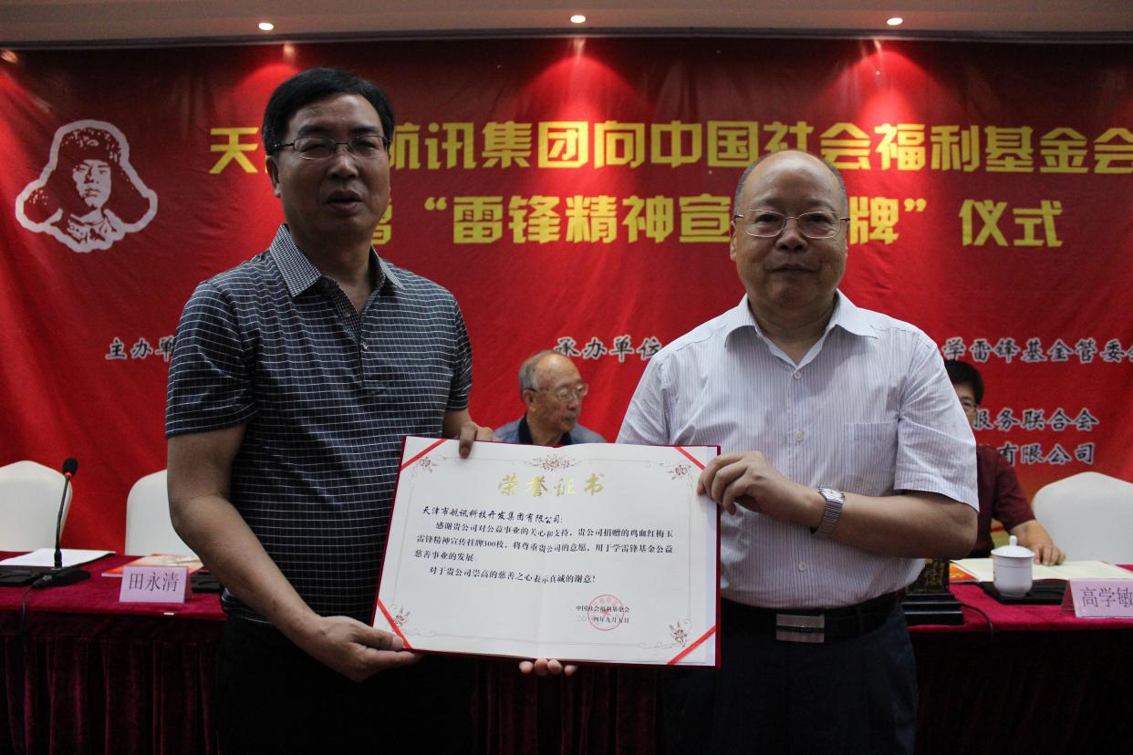 9月5日,天津市航讯科技开发集团有限公司向中国社会福利基金捐赠“雷锋精神宣传挂牌”仪式在京隆重举行。
