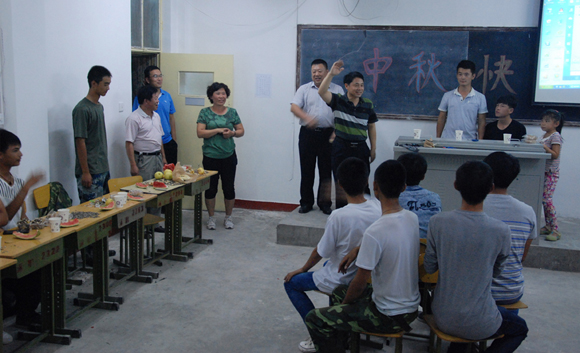 2014年9月8日中秋佳节之际,中国社会福利基金会“授渔计划”项目执行主任兼秘书长高继辉来到”授渔计划”项目学校涿州职教中心看望“授渔计划”的学生们,联同校长张剑锋及部分教职员工一起与同学们联谊欢聚,陪孩子们度过了一个温馨愉快的夜晚,为孩子们带去了节日的祝福与美好的祝愿,并通过他们转达对家人的问候。