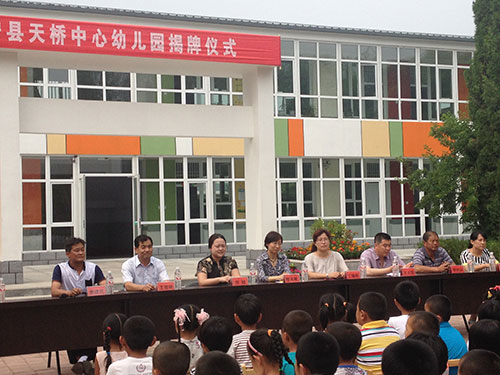 2014年6月17日,手牵手计划二期B阶段位于河北省丰宁县天桥镇的天桥中心幼儿园举行了揭牌仪式。丰宁县教育局王副局长,丰宁县天桥镇王镇长,天桥中心校郭校长,诺基亚(中国)投资有限公司企业社会责任部经理程兆敏女士,中国社会福利基金会手牵手项目执行主任丁锋辉女士,儿童乐益会传讯部经理何超女士,共同参加了此次揭牌仪式。天桥中心校郭校长介绍了该幼儿园的建设和学校情况,程兆敏经理对于幼儿园的落成及投入使用表示了赞许及感谢,丁锋辉主任代表中国社会福利基金会张仲副理事长对于丰宁县委县政府教育局的领导对于该项目的大力支持表示了由衷的感谢。