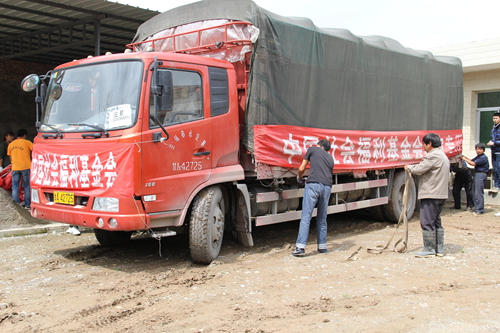 25日,中国福基会第一批物资采购在兰州电视台全程现场跟拍、甘肃晨报记者现场监督下顺利完成,1000床棉被、500个床垫以及500件长雨衣当晚装车驶向岷县,26日上午抵达梅川镇。
