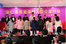 2016年5月9日下午,湖南郴州安仁县,大雨倾盆,但在幸福分娩孕产包发放仪式现场,气氛活跃又热烈,每一位孕妈妈脸上都挂着满足的笑容。