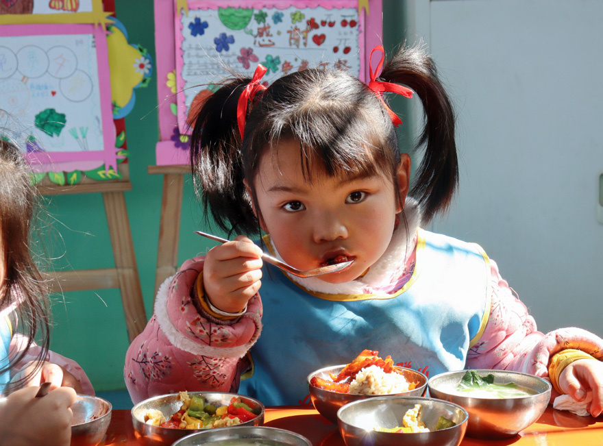 截至2023 年4 月2 日,成立12 年的中国社会福利基金会免费午餐基金已累计在全国26 个省份的1727 所学校开餐,帮助42 万多人吃上热气腾腾的午餐。从3 元餐标提升至4 元、6 元, 推出“质食计划”,开展“免费午餐食育小课堂”,免费午餐基金从助力解决乡村儿童吃饭问题,逐渐升级到关注乡村儿童营养水平。图为2011 年4 月2 日,贵州省毕节市黔西县花溪彝族苗族乡沙坝小学的孩子们第一次吃上免费午餐。