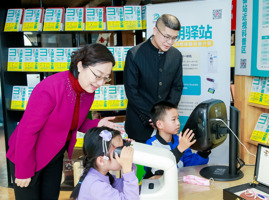中国社会福利基金会关爱妇儿健康基金于2023 年1 月启动“光明驿站”护眼项目。该项目通过组织专家编写专业的儿童青少年近视防控科普和培训教材,开展儿童青少年视力健康科普活动, 倡导“一边用眼一边护眼”的理念。项目计划在全国100 个城市的社区、中小学、幼儿园建立“光明驿站”,并同步配备相关设备;项目将重点关注近视高发地区的儿童少年眼睛健康问题。