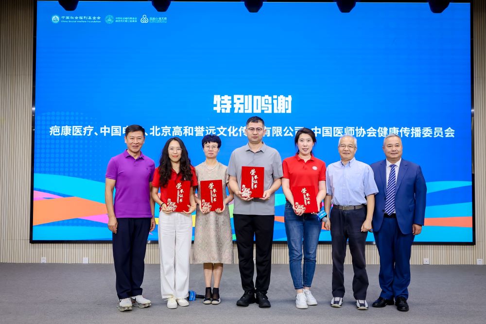 现场,疤康医疗、中国电信、高和传媒、中国医师协会健康传播工作委员会等单位,因支持项目发展、推广科普贡献突出获颁感谢证书。