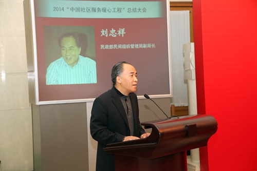 国家民政部民间组织管理局刘忠祥副局长在致辞中说,社会组织是推动社会文明进步的重要力量,“暖心工程”项目论证充分,针对性强,项目适应我国老龄化社会到来的需要,有效整合各类社会资源,为社会中无收入、无劳动能力、无赡养人和抚养人的“三无”老人、高龄老人及其他有需求的老人提供日间照料,使其享受优质便捷的社区服务,是解决社区居家养老问题的有益探索和实践。