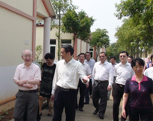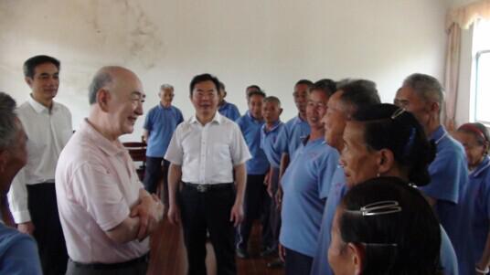 陈虹部长一行深入敬老院老人住所、活动室、食堂等,仔细询问老人的生活起居和身体情况,他的平易近人让院里老人十分感动,有的紧紧握住他的手,有的紧紧围绕在他身边,显得格外激动和高兴。一位年近古稀老人情深意切地说道:“我们出生在旧社会,生活在新时代,没有党和政府,哪有我们今天的幸福生活。”在随后的捐赠仪式上,中国社会福利基金会城乡发展基金、浙江球冠集团捐款20万元资助梅林敬老院基础设施改造和老人用品更新。仪式期间,陈虹部长发表了激情洋溢的演讲,他说:“养老院是牵动千万个家庭最敏感神经的地方,一定要发展好养老服务业,让老人们过上安全、幸福的晚年生活。同时广泛动用社会力量,像浙江球冠集团陈永明董事长这样的爱心企业家一样,共同为我国养老公益事业做出更大的贡献”。陈部长看到老人老有所养、老有所乐、老有所依,十分高兴,挥笔写下了“孝感天地”、“老人乐园”的墨宝,勉励所有为养老事业献身的工作人员。随后,还视察了丰城市尚庄等敬老院。离别时分,老人们自发的簇拥在陈老身边,陈虹部长深情款款的对大家说:“今年我75岁了,85岁我还来看大家!”,老人和工作人员掌声久久不能停息。