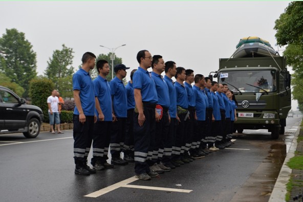 (图1 南昌魅力赣江水上乐园外队员集结完毕,整队出发)