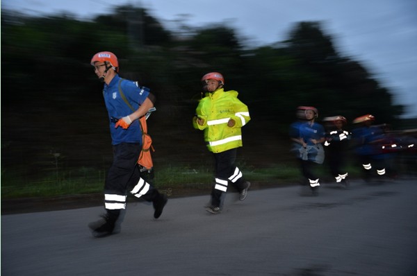 (图7 救援队员抵达救援现场,开始分小组搜救)