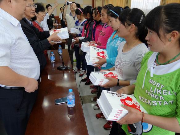 基金会学雷锋基金执行主任高学敏一同前往项目学校看望“授渔计划”的藏族同学,并向每位同学赠送了《雷锋》书籍。